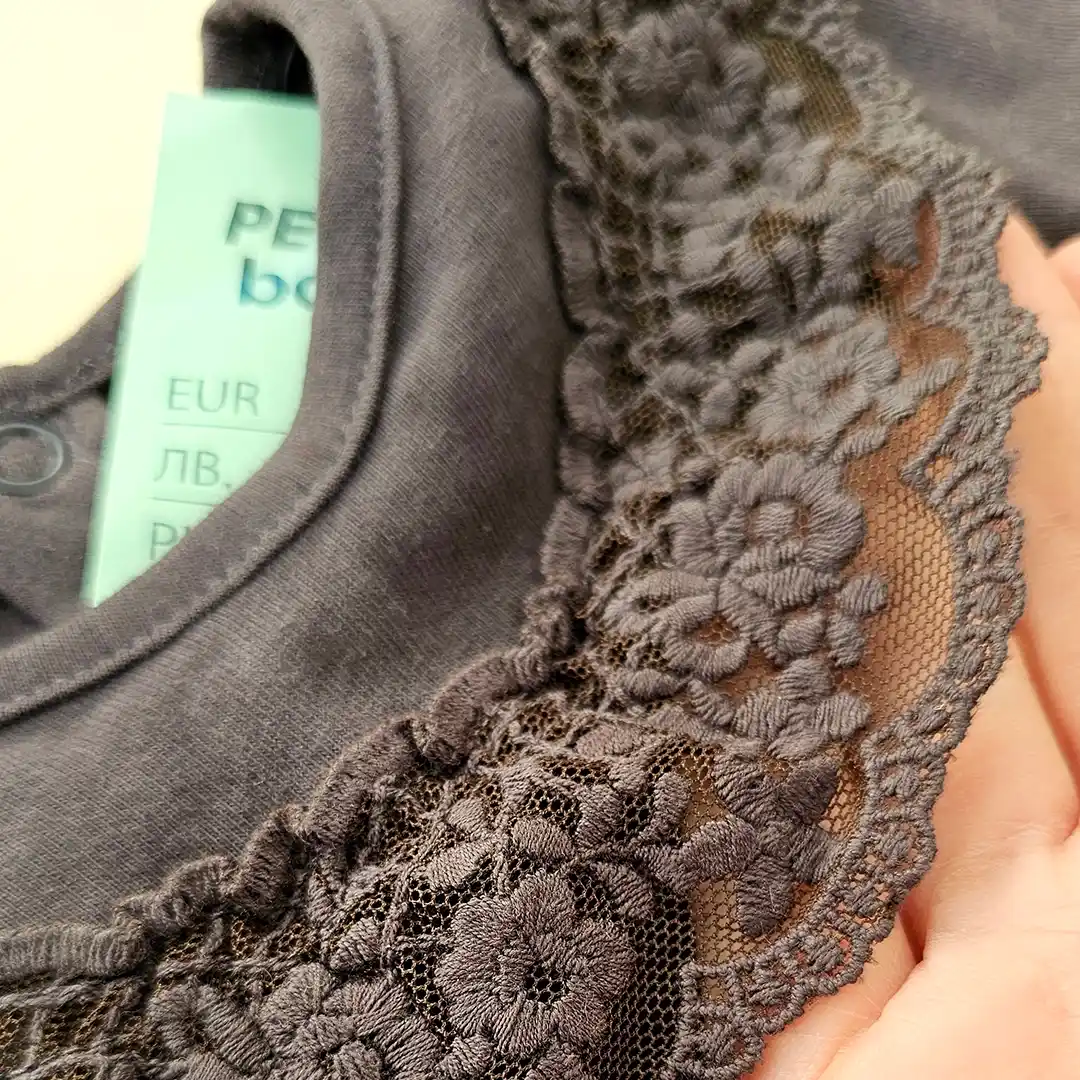 بادی گیپوردار آستین بلند رنگ ذغالی تیره از برند سوکیوت، انتخابی شیک و راحت برای نوزادان شماست. این بادی زیبا با طراحی گیپوردار و رنگ جذاب ذغالی تیره، استایلی منحصربهفرد به لباس نوزاد میبخشد.